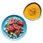 Sirve el bacalao con el tomate. Acompaña con el puré las semillas.