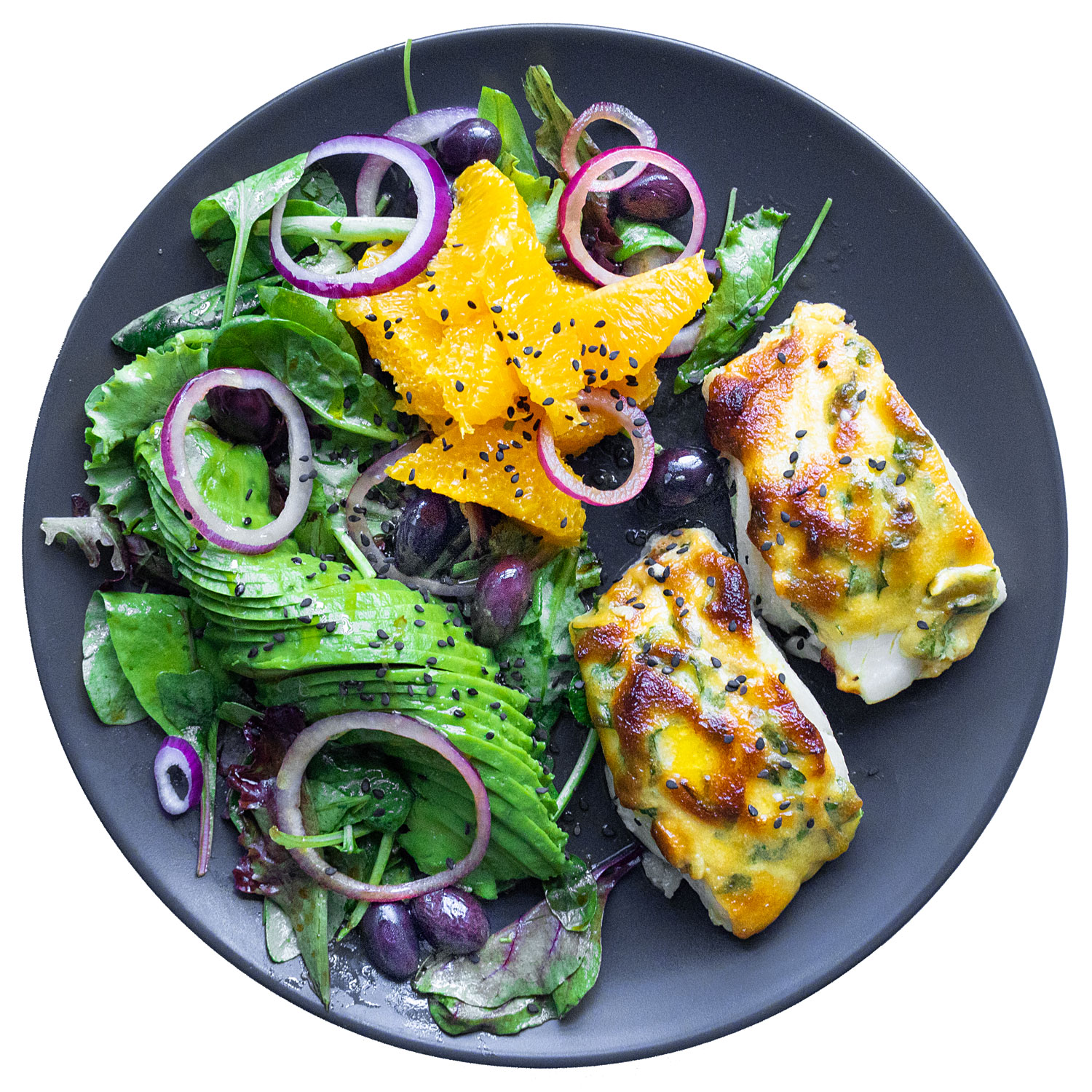 Mezcla el alioli con el perejil y cubre el pescado con la salsa.