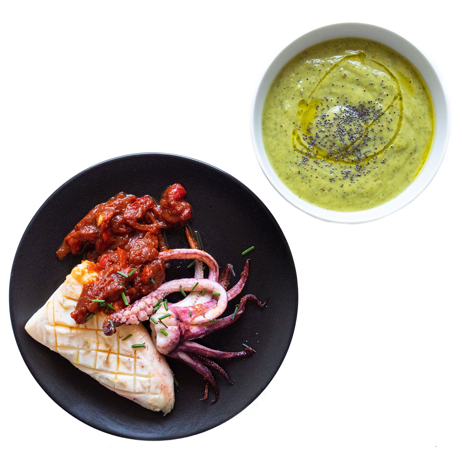 Sirve los calamares y acompaña con la crema.