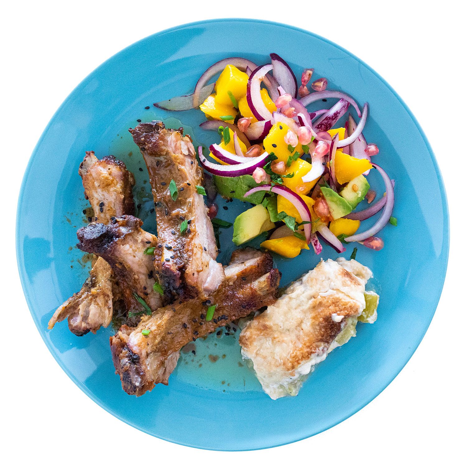 Sirve la costilla con el apio y acompaña con la ensalada.