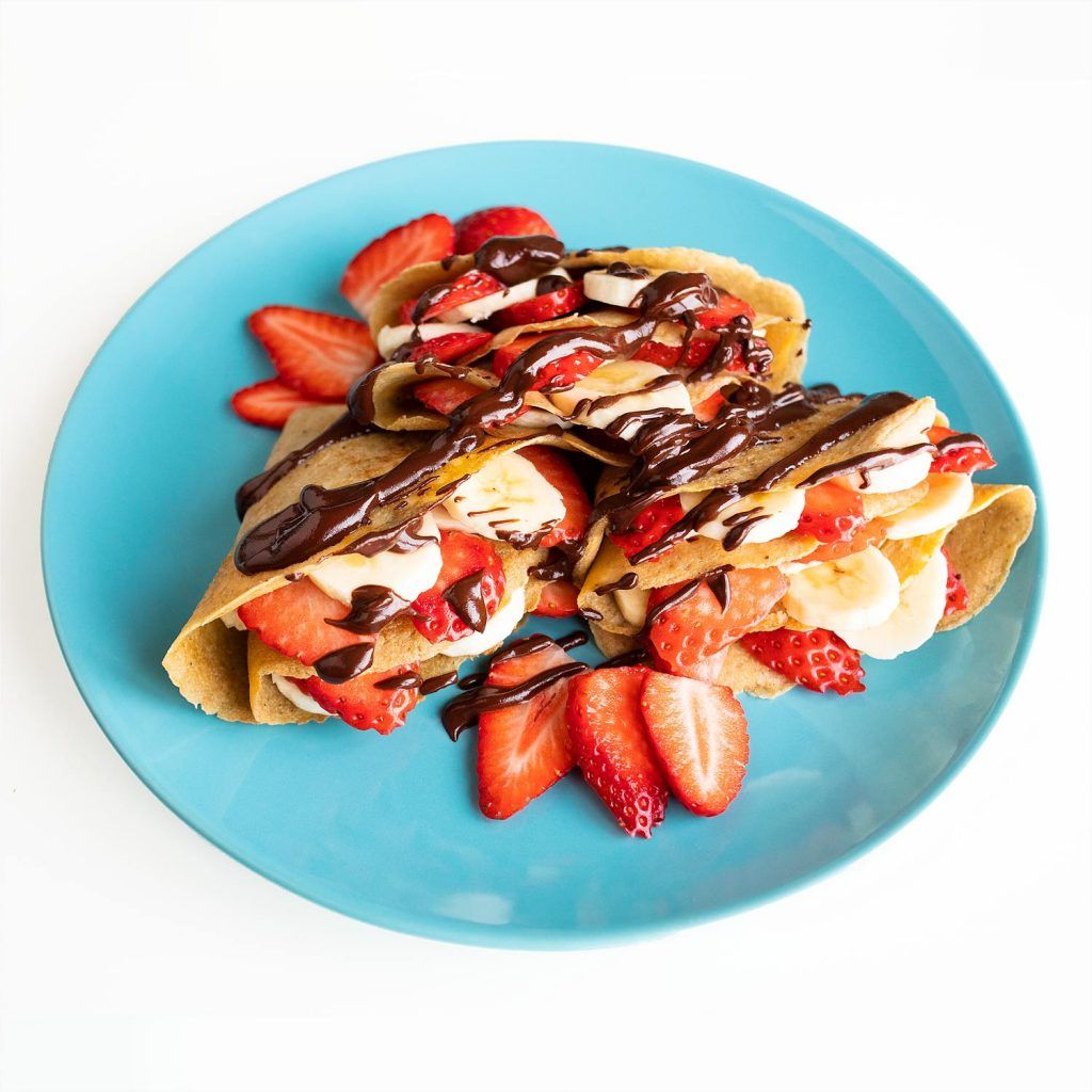 Para hacer las crepes, tritura los plátanos macho en el procesador hasta que quede una textura homogénea. Añade el resto de los ingredientes de las crepes y tritura hasta que quede bien liso.