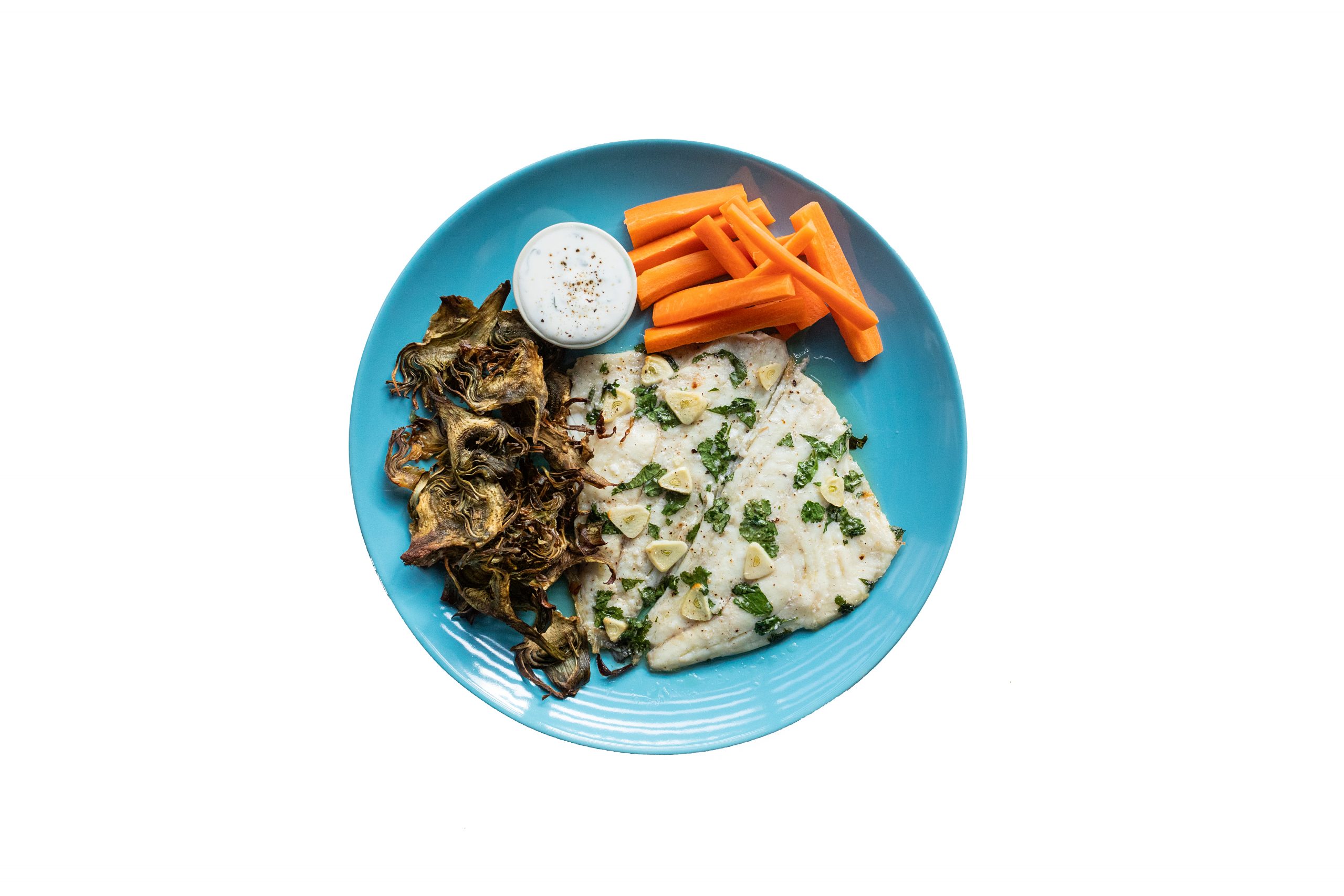 Sirve el pescado con los chips y acompaña con la zanahoria + la salsa.