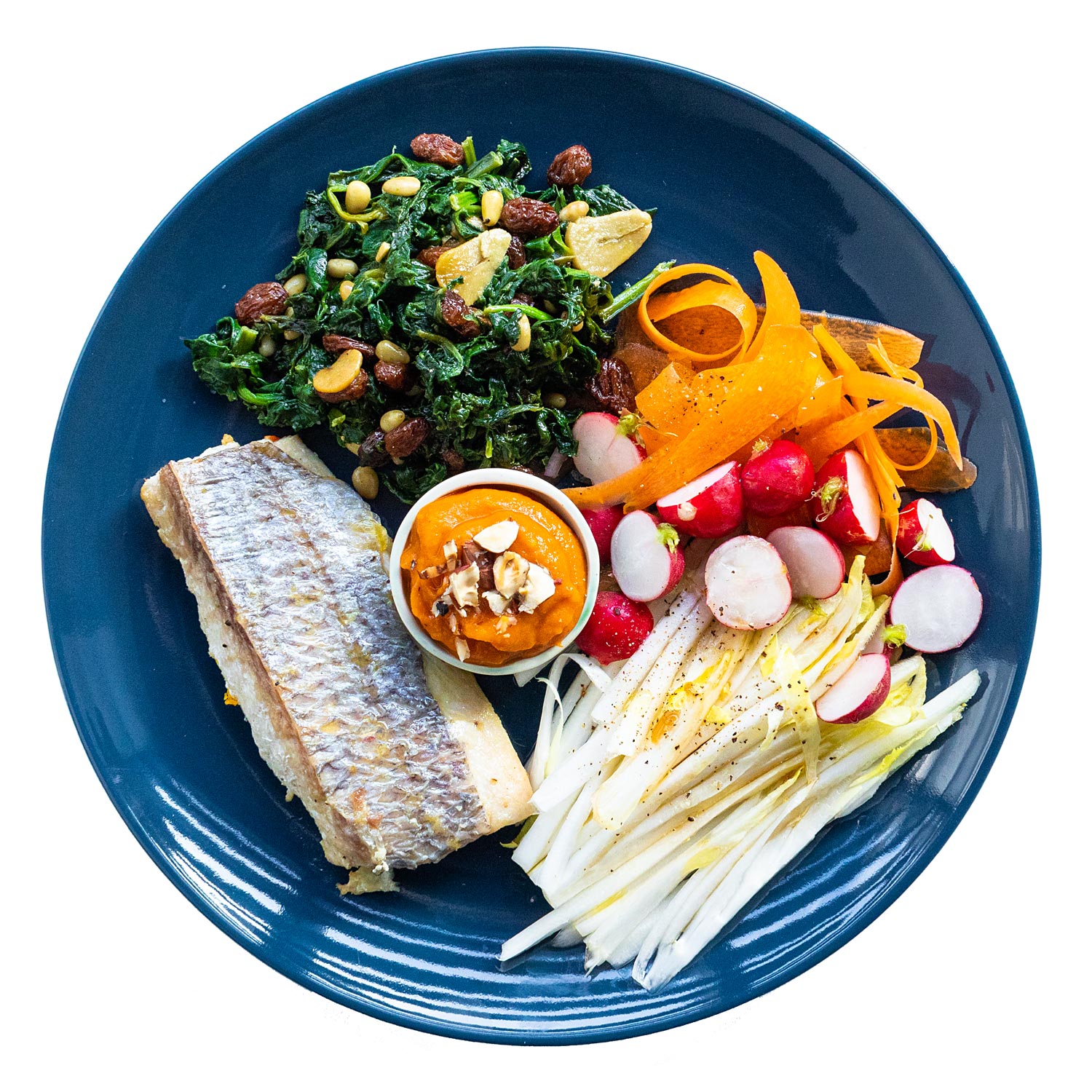 Sirve el pescado con las espinacas y acompaña con la ensalada.