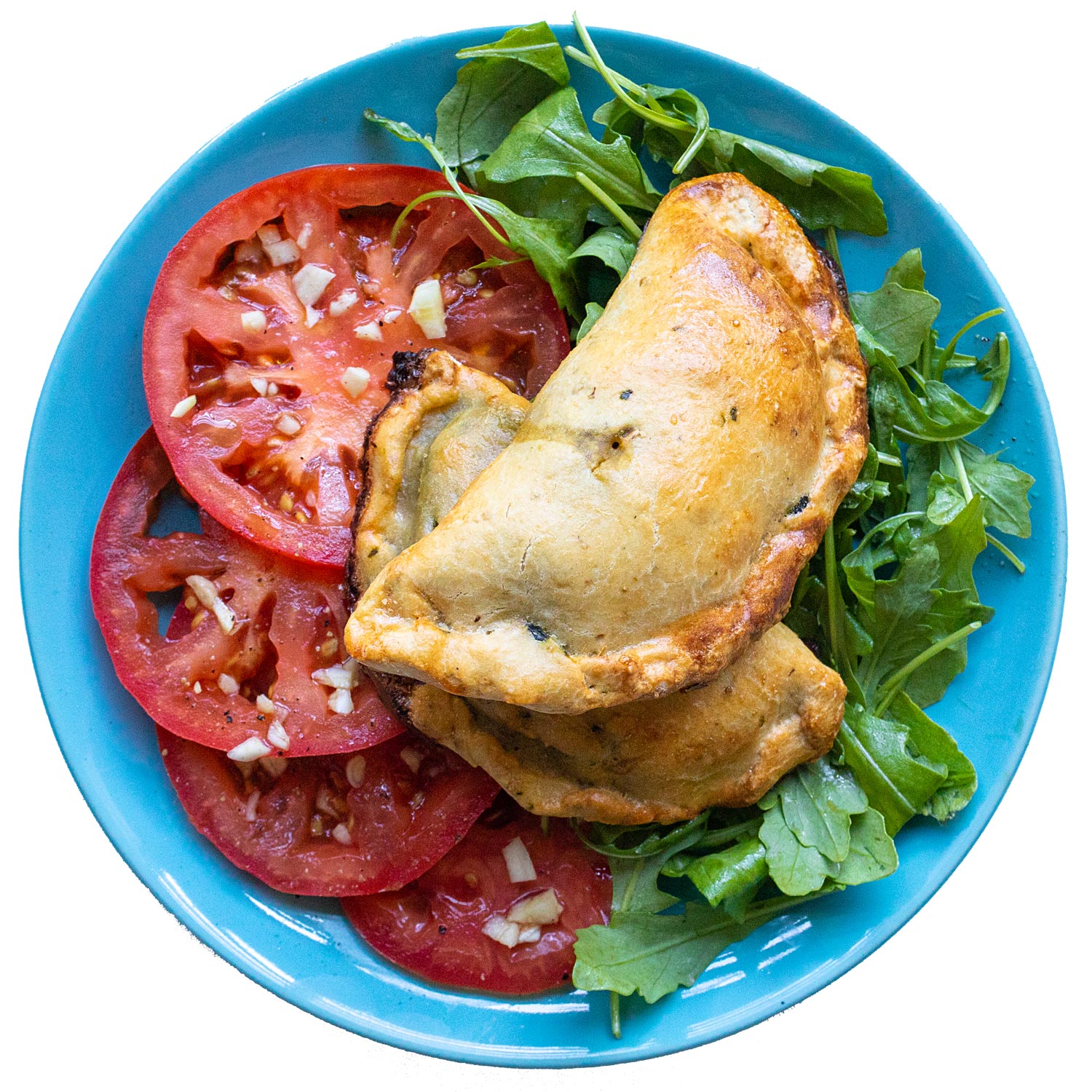 Sirve las empanadillas sobre la ensalada.