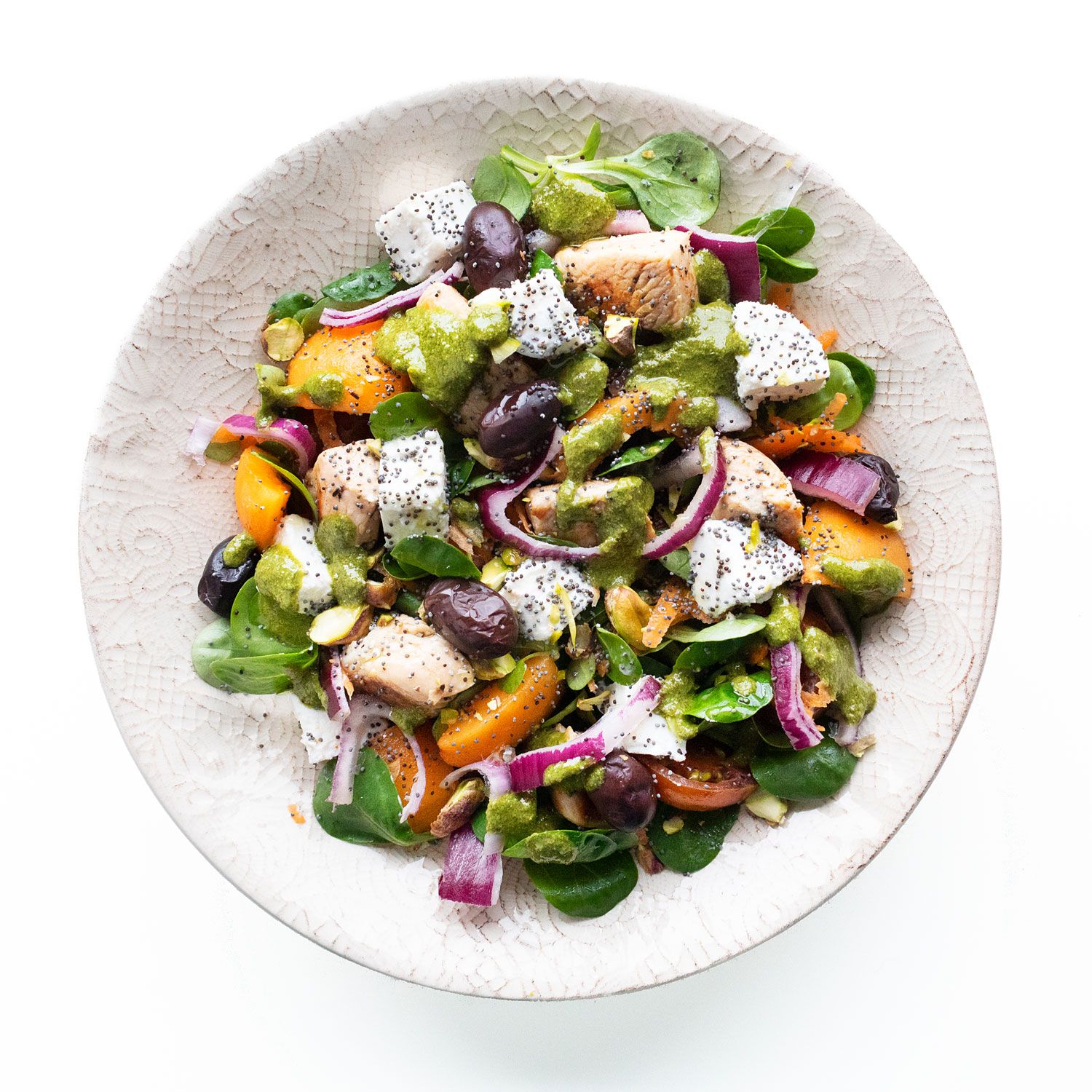 Mezcla en un bol el pavo + el pesto + el resto de ingredientes y remueve hasta integrar. Sirve y disfruta.
