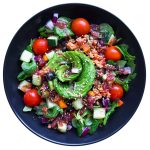 Mezcla todos los ingredientes + el picadillo y remueve hasta integrar. Aliña con la vinagreta y sirve.