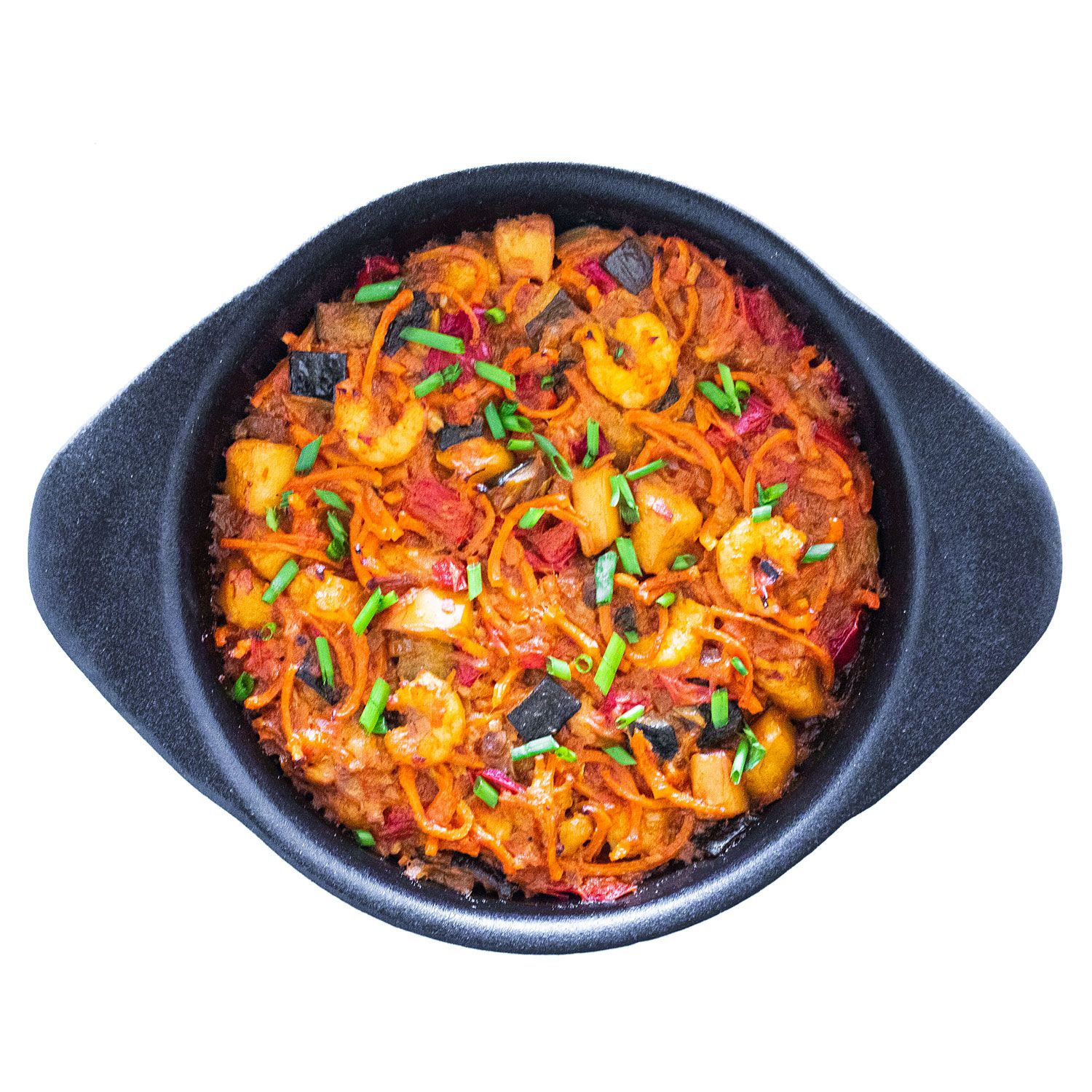 Añade los fideos de zanahoria, remueve y cuece 3-5 minutos o hasta que el líquido haya reducido pero el guiso esté ligeramente caldoso. Prueba el punto de sal.