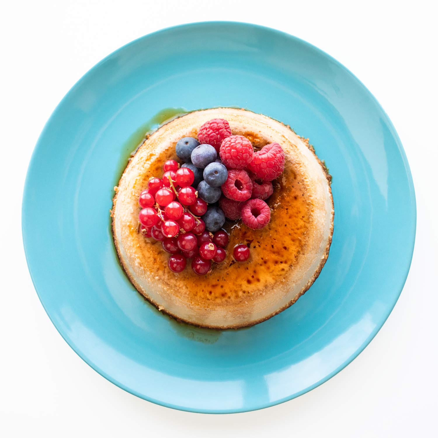 Para desmoldar el flan, introduce un cuchillo por uno de los laterales de la flanera hasta la base para introducir aire y vuelca sobre un plato. Si quieres evitar este paso, puedes servirlo directamente del molde.