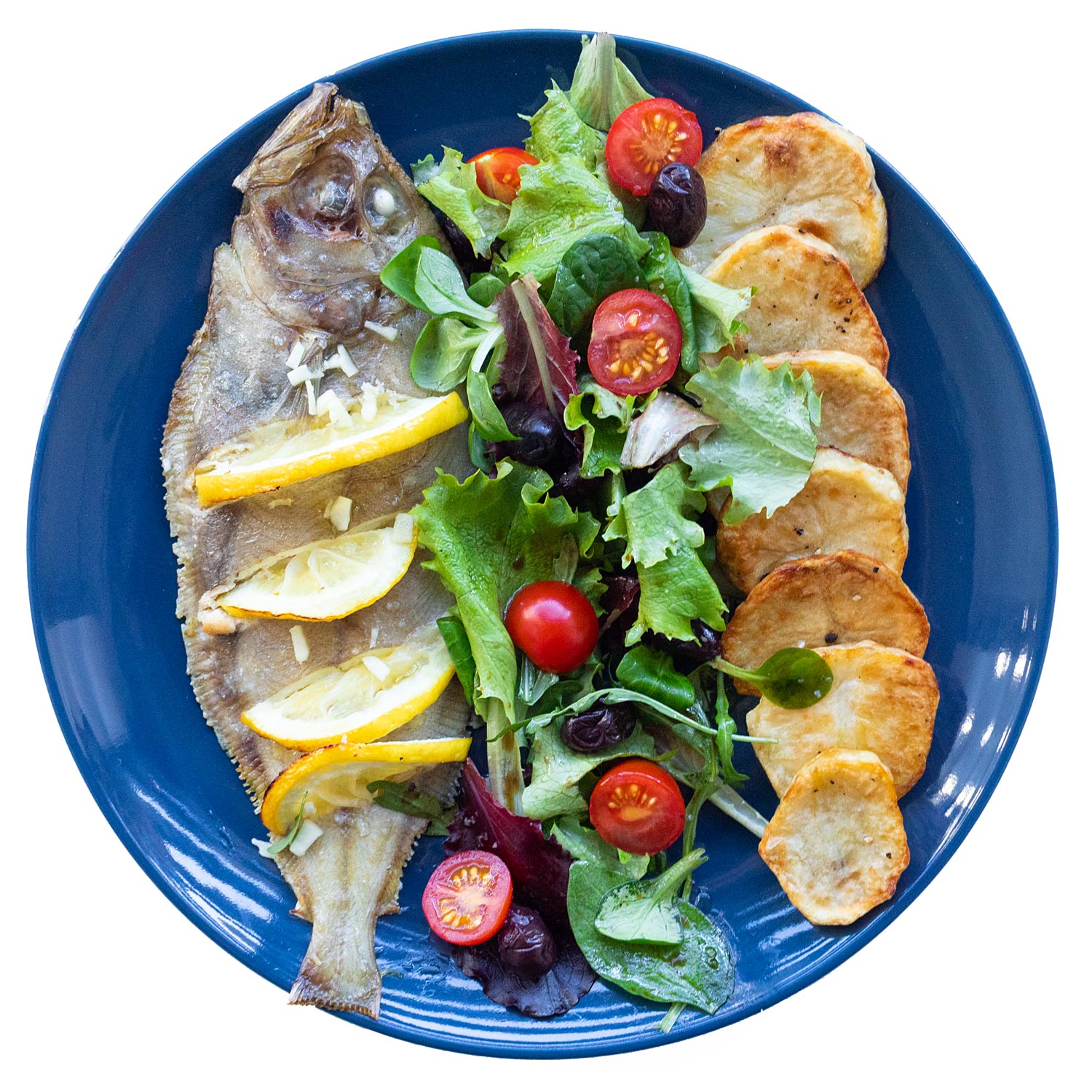 Sirve el pescado con las patatas y decora con las semillas. Acompaña con la ensalada.