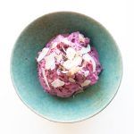 Añade al procesador de ingredientes el yogur + las cerezas + la leche de coco y tritura durante 2-3 minutos o hasta que te quede una mezcla cremosa. No tritures en exceso o se derretirá.