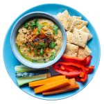 Sirve el hummus con los crudités y acompaña con los crackers. Decora con las semillas + el cilantro.