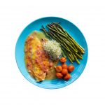 Sirve el pescado con los espárragos + los tomates y acompaña con los brotes.