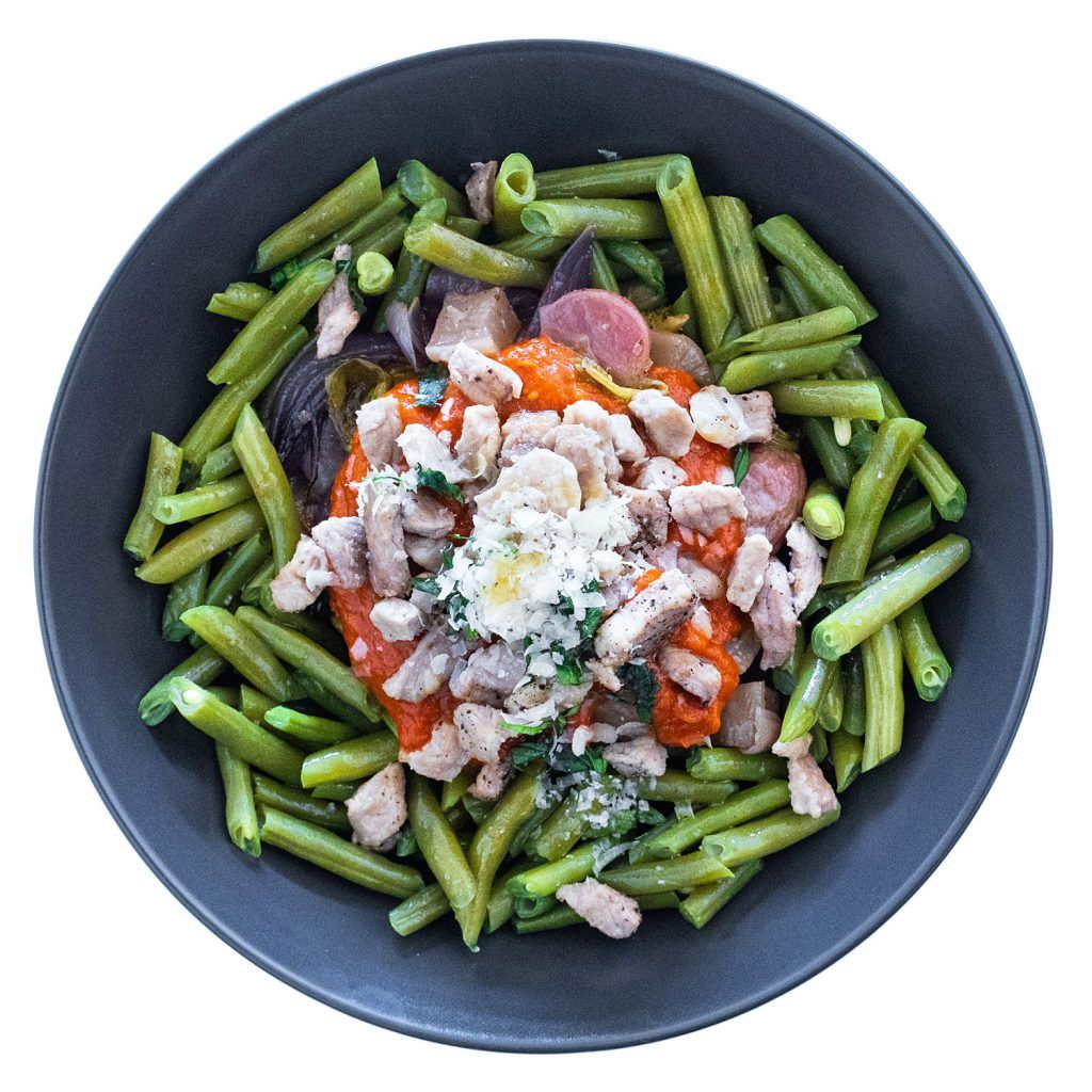 Mezcla las judías con la salsa boloñesa + las verduras asadas.