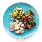 Dados de Merluza con Patata, Aceituna Negra y Mojo de Cilantro