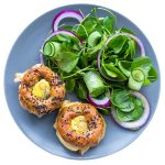 Bate el otro huevo en un bol. Coloca en la bandeja de horno y pinta con el huevo batido. Espolvorea las semillas.