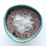 Tritura los plátanos + el resto de ingredientes (excepto el chocolate) con la batidora de mano o el procesador durante 3 minutos o hasta que te quede un puré liso.
