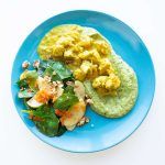 Pavo al Curry con Puré de Calabacín y Ensalada de Manzana