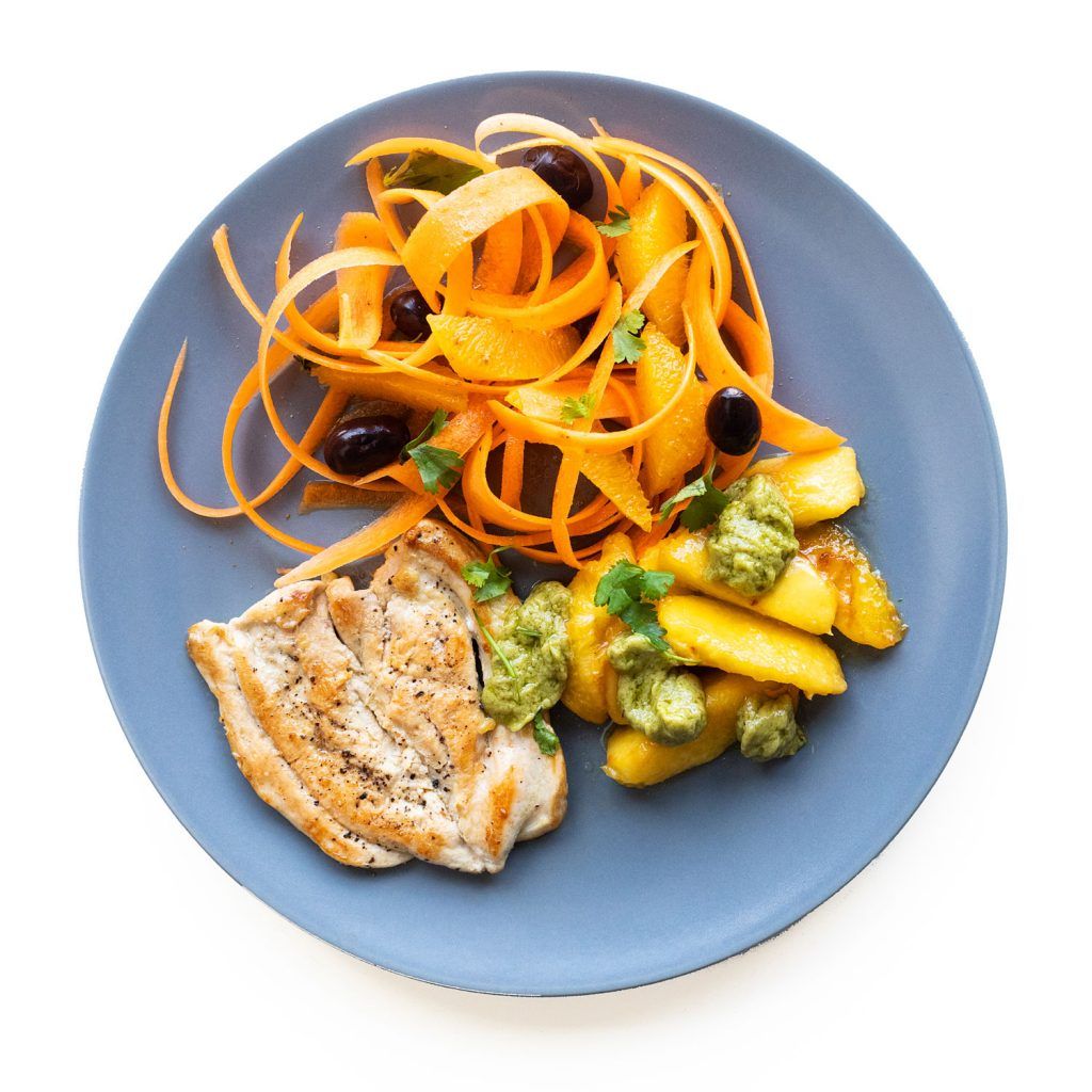 Pollo con Melocotones a la Plancha y Ensalada de Zanahoria