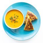 Tortilla de Puerros / Pollo a la Cúrcuma con Sopa Fría de Calabaza y Langostinos