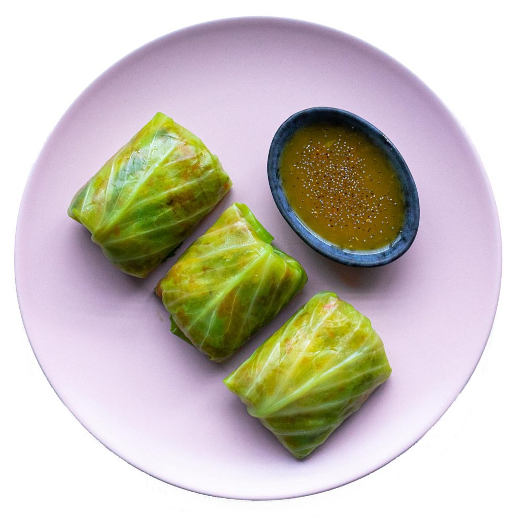 Rollitos de Col con Salsa Agridulce