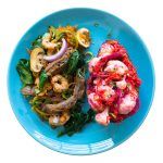 Salteado de Gambas con Aguacate y Encurtidos