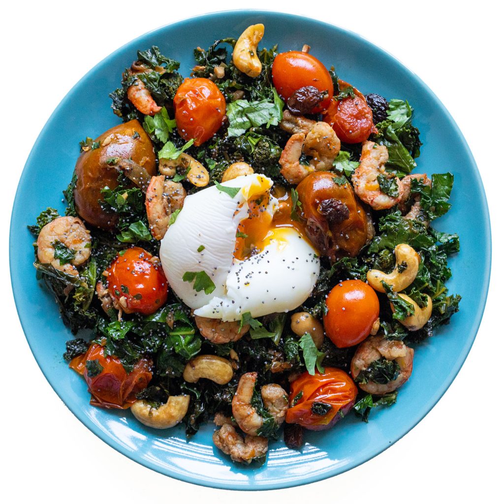 Sirve el salteado y acompaña con el huevo (sustituye por el aguacate para AIP). Decora con el cilantro.