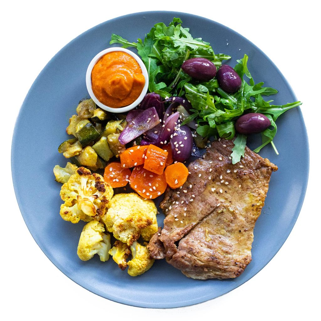 Secreto de Cerdo y Verduras Con Romesco