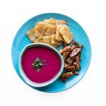 Secreto con Pencas Rebozadas y Gazpacho de Remolacha
