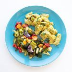 Sirve la verdura asada junto al solomillo. Decora con el resto del cilantro y disfruta.