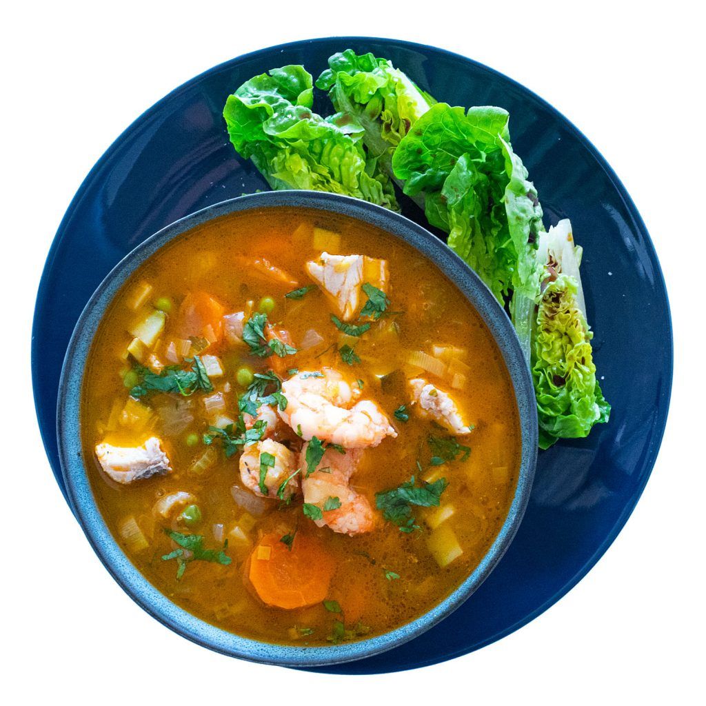 Añade todos los ingredientes desde el ajo hasta la zanahoria + ½ tsp sal y rehoga durante 10-12 minutos o hasta que estén blandos.
