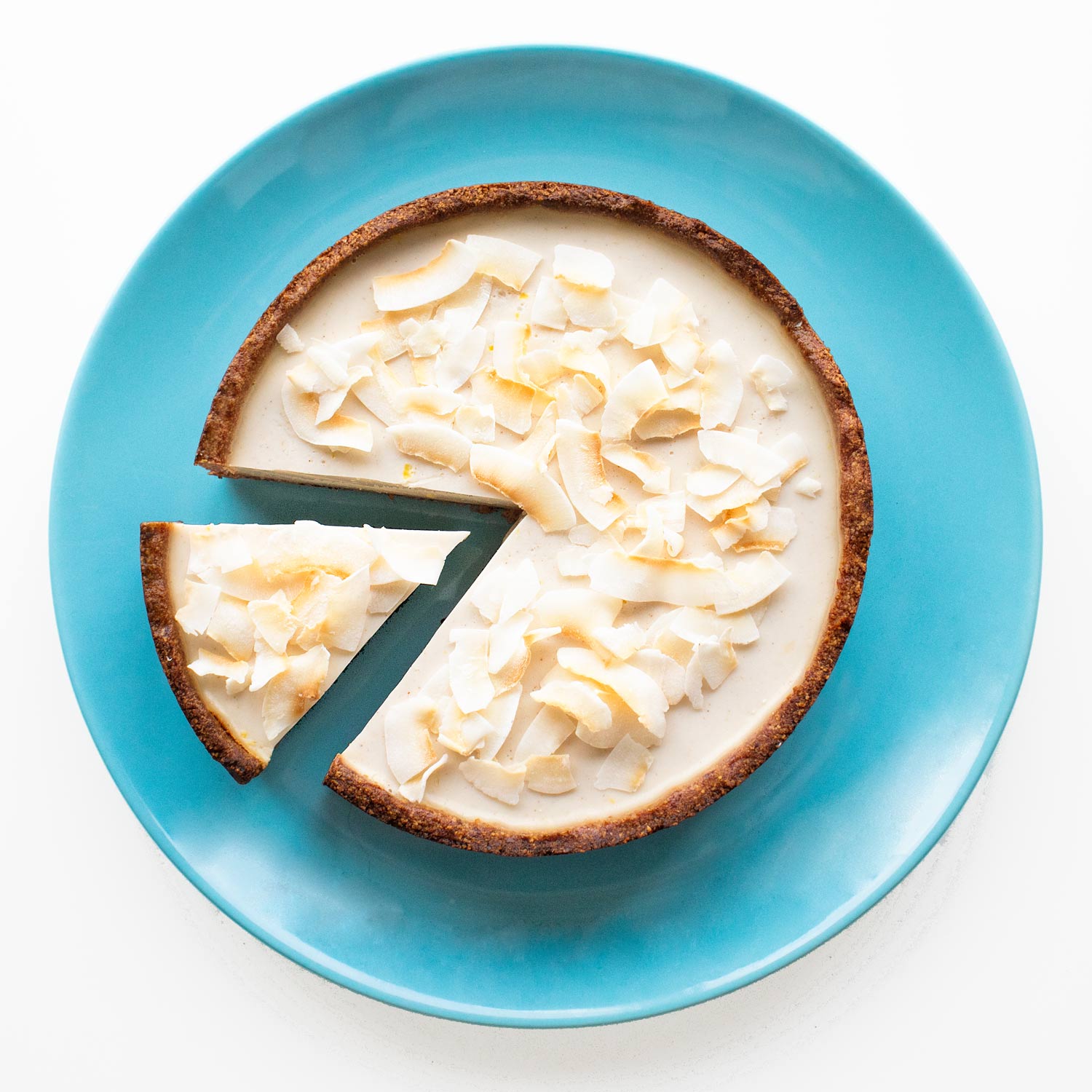 Mezcla en un bol el zumo de limón + la leche de coco + la canela + la mezcla anterior y remueve con una varilla hasta obtener una crema homogénea. Deja reposar hasta que la base haya enfriado por completo. Este paso es importante para que la tarta salga bien.