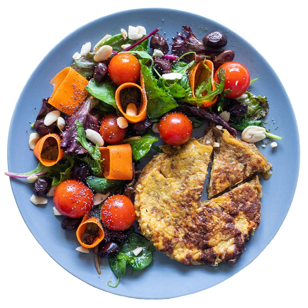 Sirve la tortilla (sustituye por el lomo para AIP) y acompaña con la ensalada.