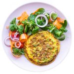 Sirve la tortilla (sustituye por ternera si haces AIP) y acompaña con la ensalada.